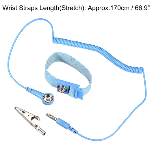 Anti Static Wrist Straps, ESD Components, Stainless Steel Magnetic Tray Grounding Wire Alligator Clip Light Blue 1Pcs