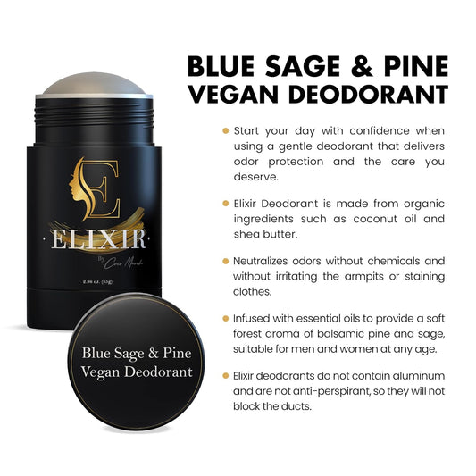 Elixir by Coco March Aluminum Free Vegan Deodorant -Blue Sage & Pine-Gentle Natural Ingredients W/Effective Odor Protection, Essential Oil Scent, Made W/Organic Coconut Oil & Shea Butter-2.98 Oz